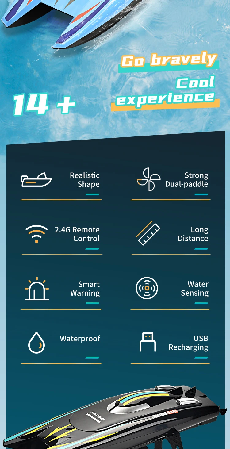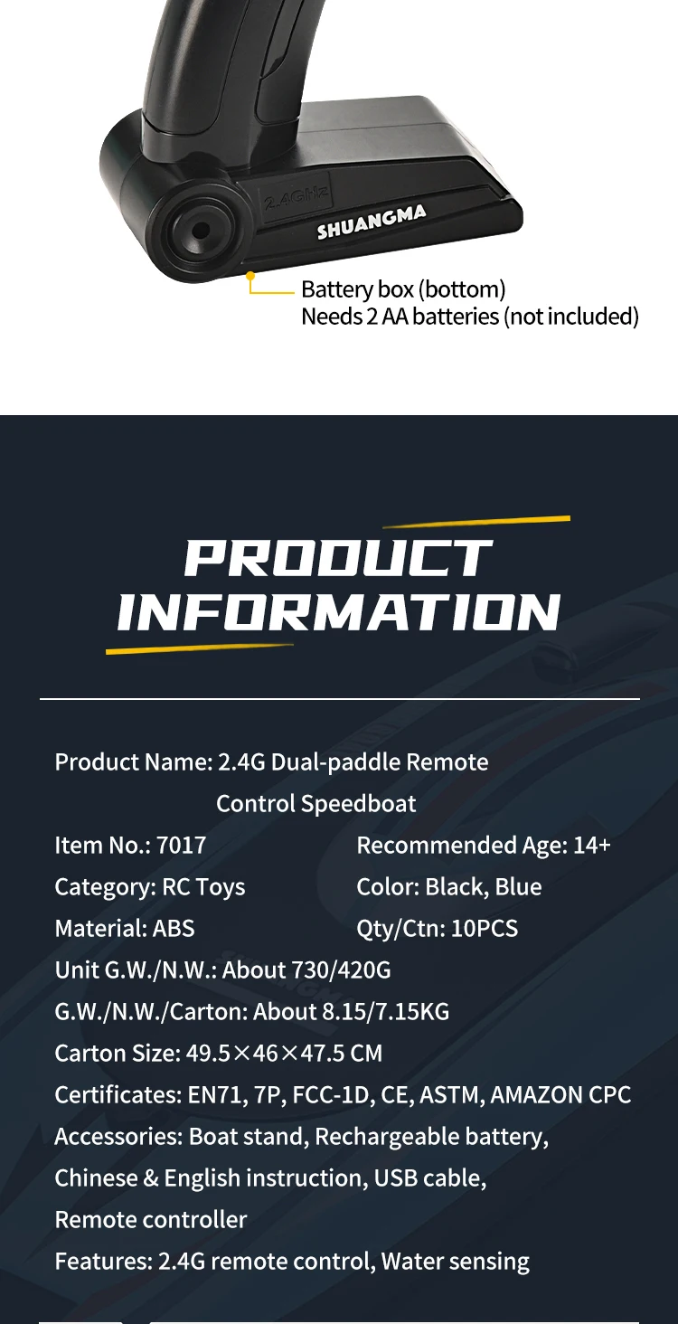 2.4G Dual-Paddle Remote Control Speedboat Toys with Included USB Cable