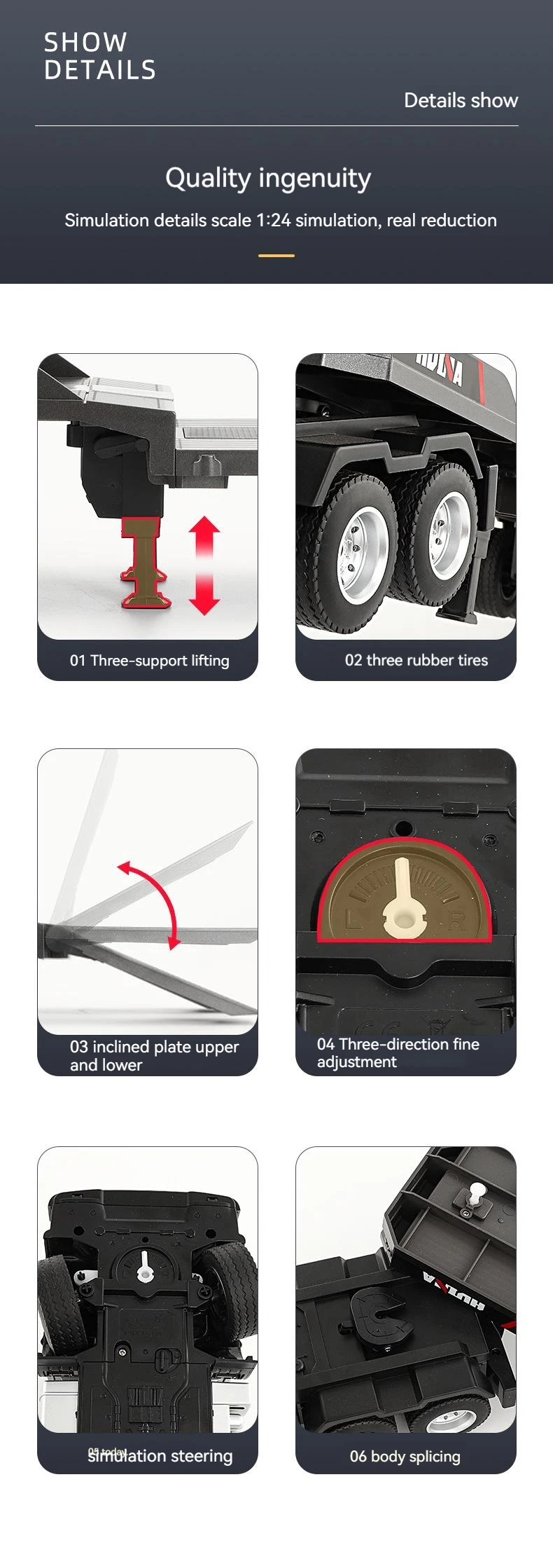 2023 new 2.4g Remote Control 1:24 Rc Trailer Truck Tractor Huina 1318 Construction Flatbed Rc Car Toys For Kids Gifts