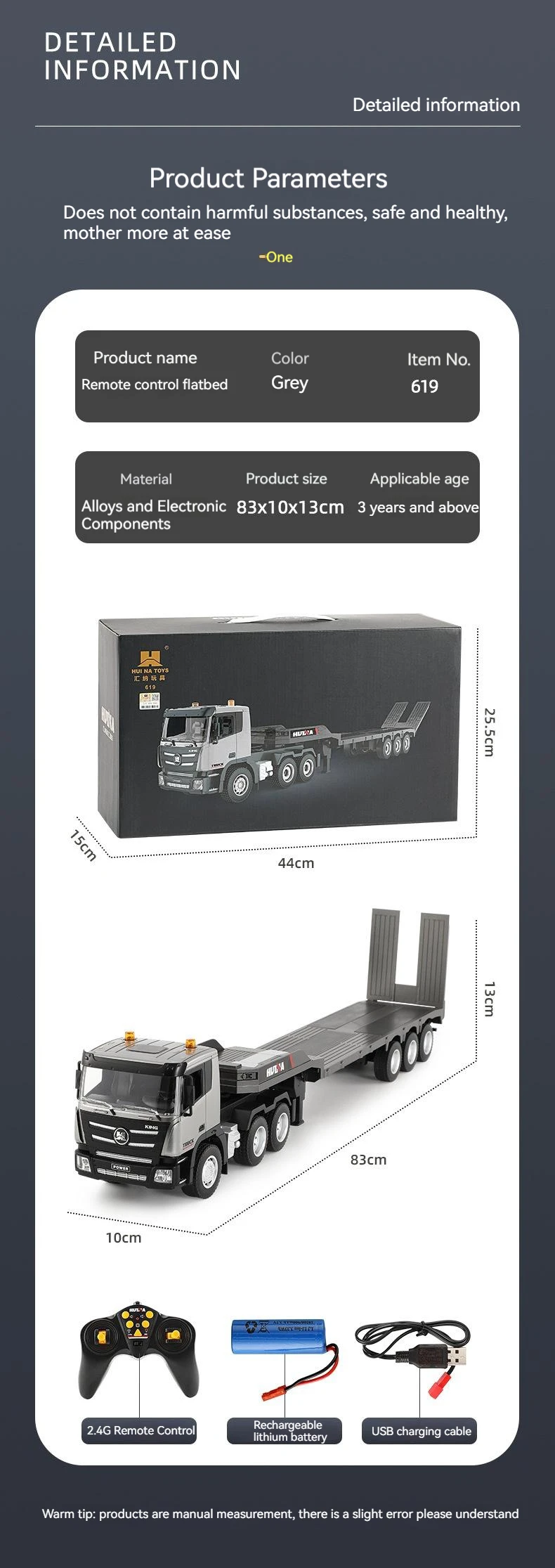 - Product name : 2.4g Remote Control 1:24 Rc Trailer Truck Tractor Huina 1318