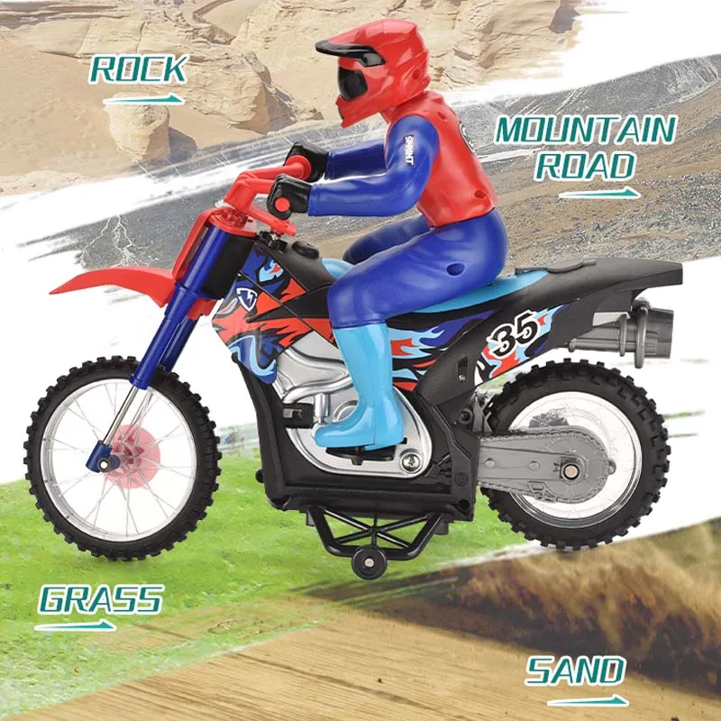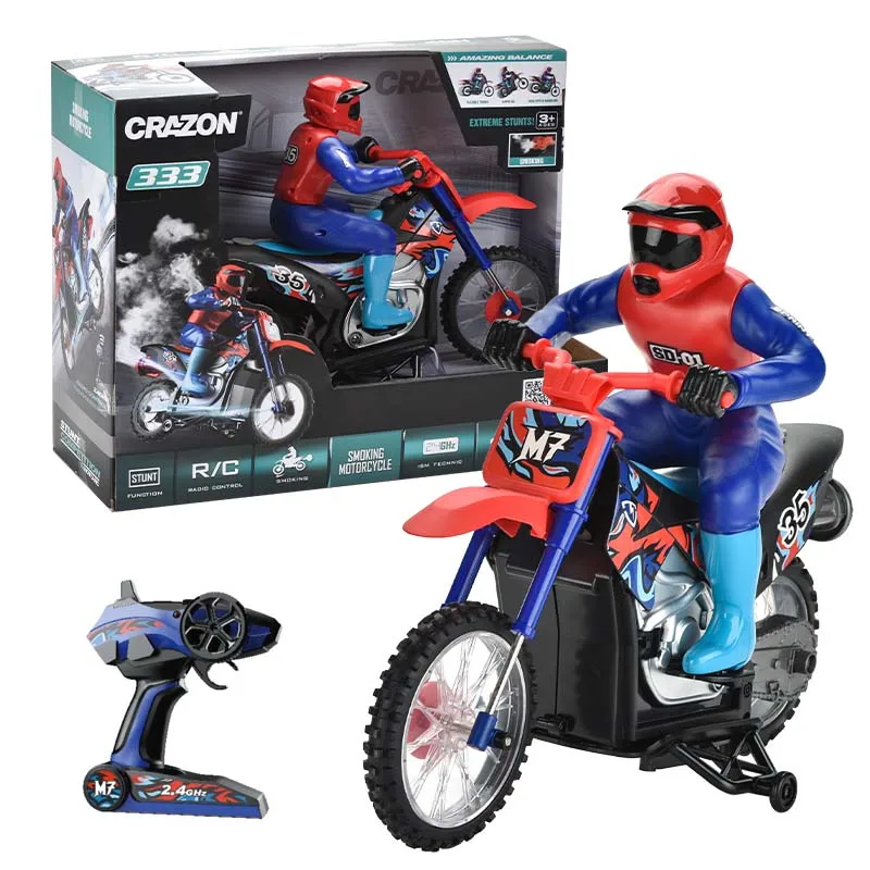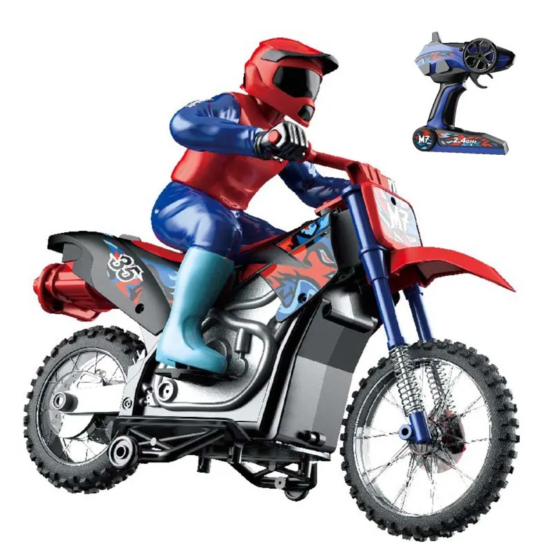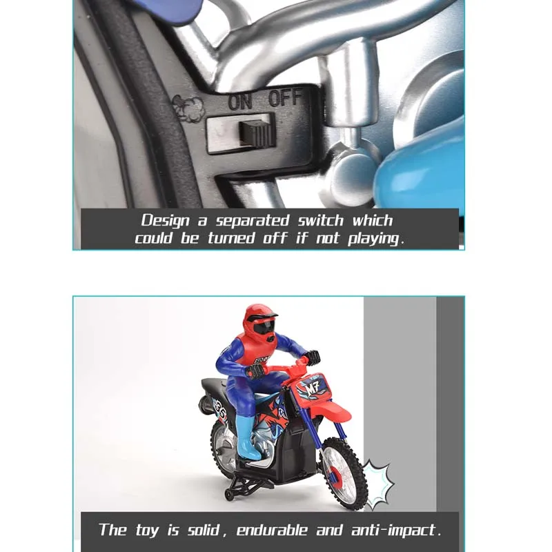 New arrival 2.4G 1:10 kids outdoor play rc remote control motorcycle toy with light and spray