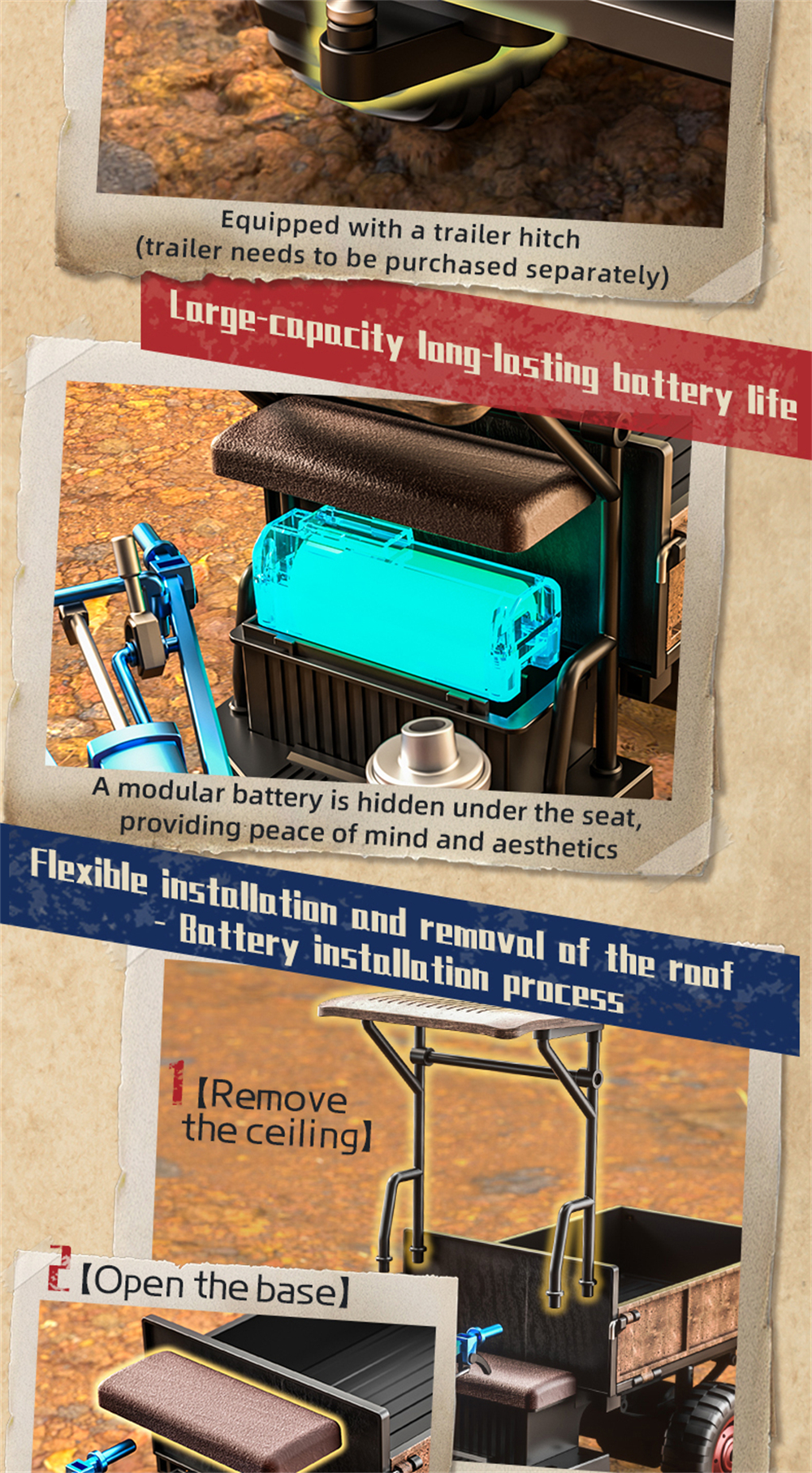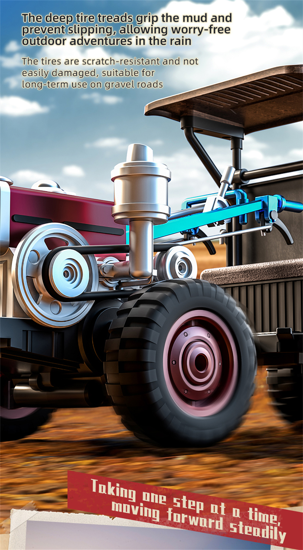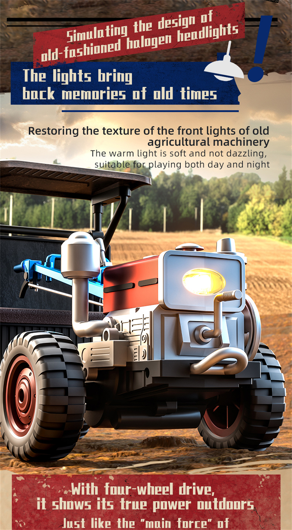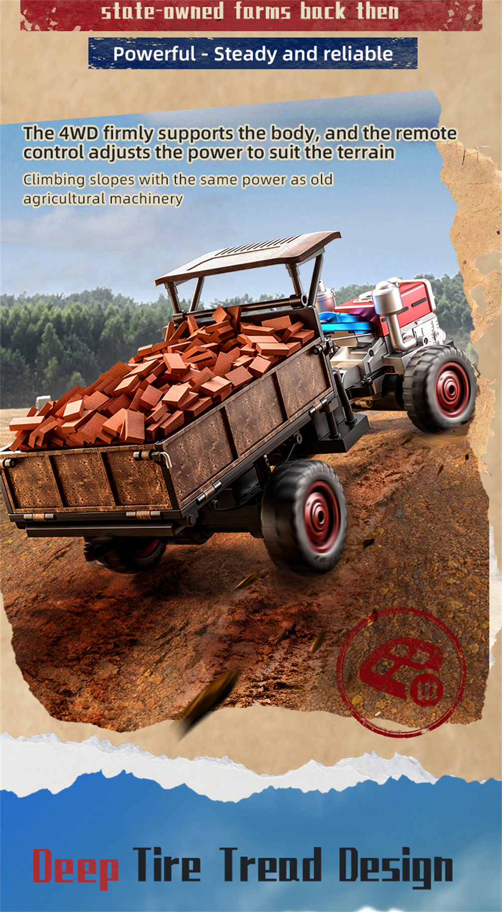 3. 4-wheel drive, strong climbing ability, heavy load capacity. Servo steering achieves full-proportional throttle control.