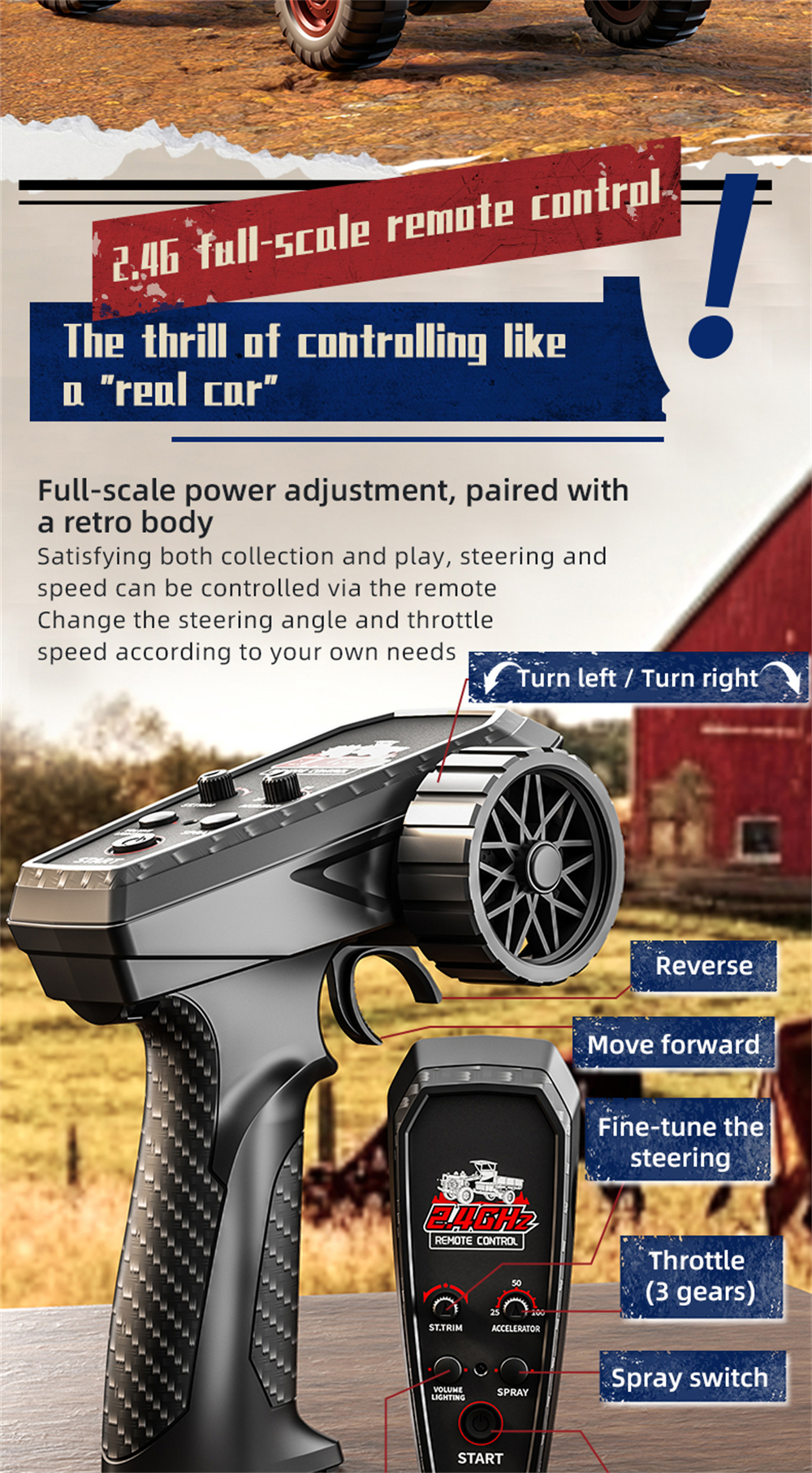 1. Fully scaled simulation, classic retro design, combining remote control play and high-quality model; a collectible and displayable remote control masterpiece.
