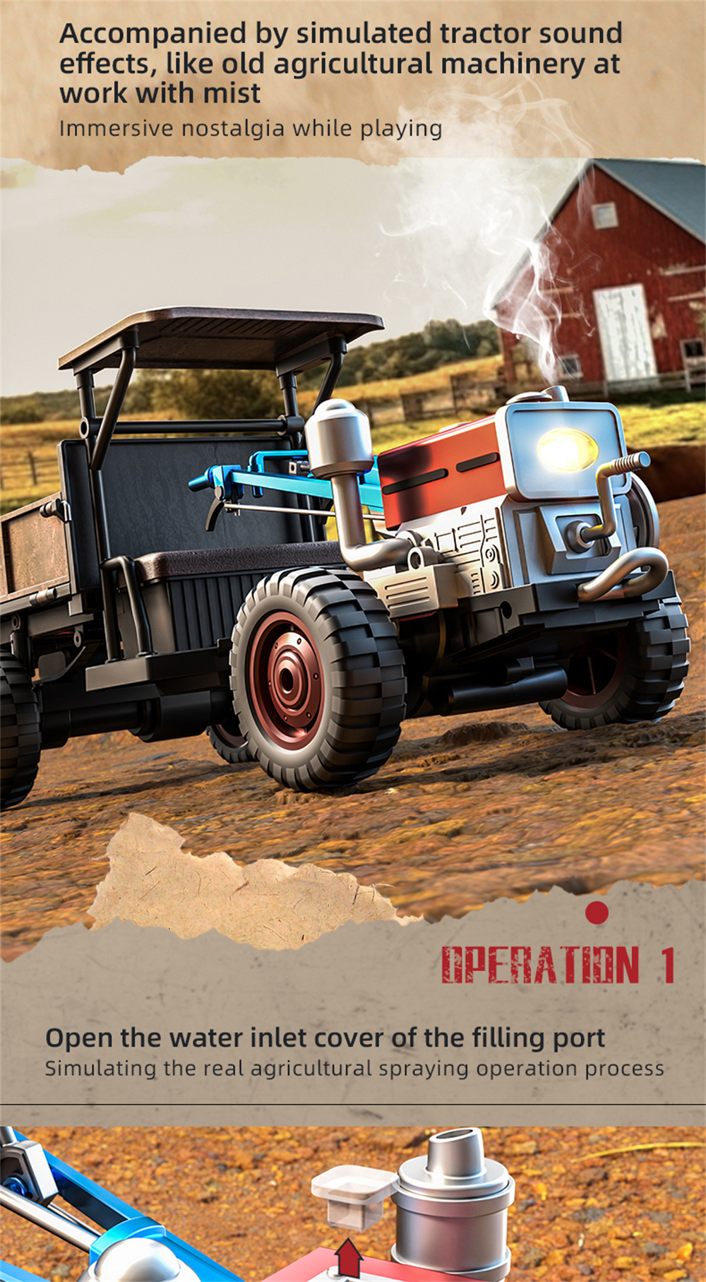 2. Features: forward, backward, left turn, right turn, light control, simulated sound effects, simulated exhaust spray, and other functions.