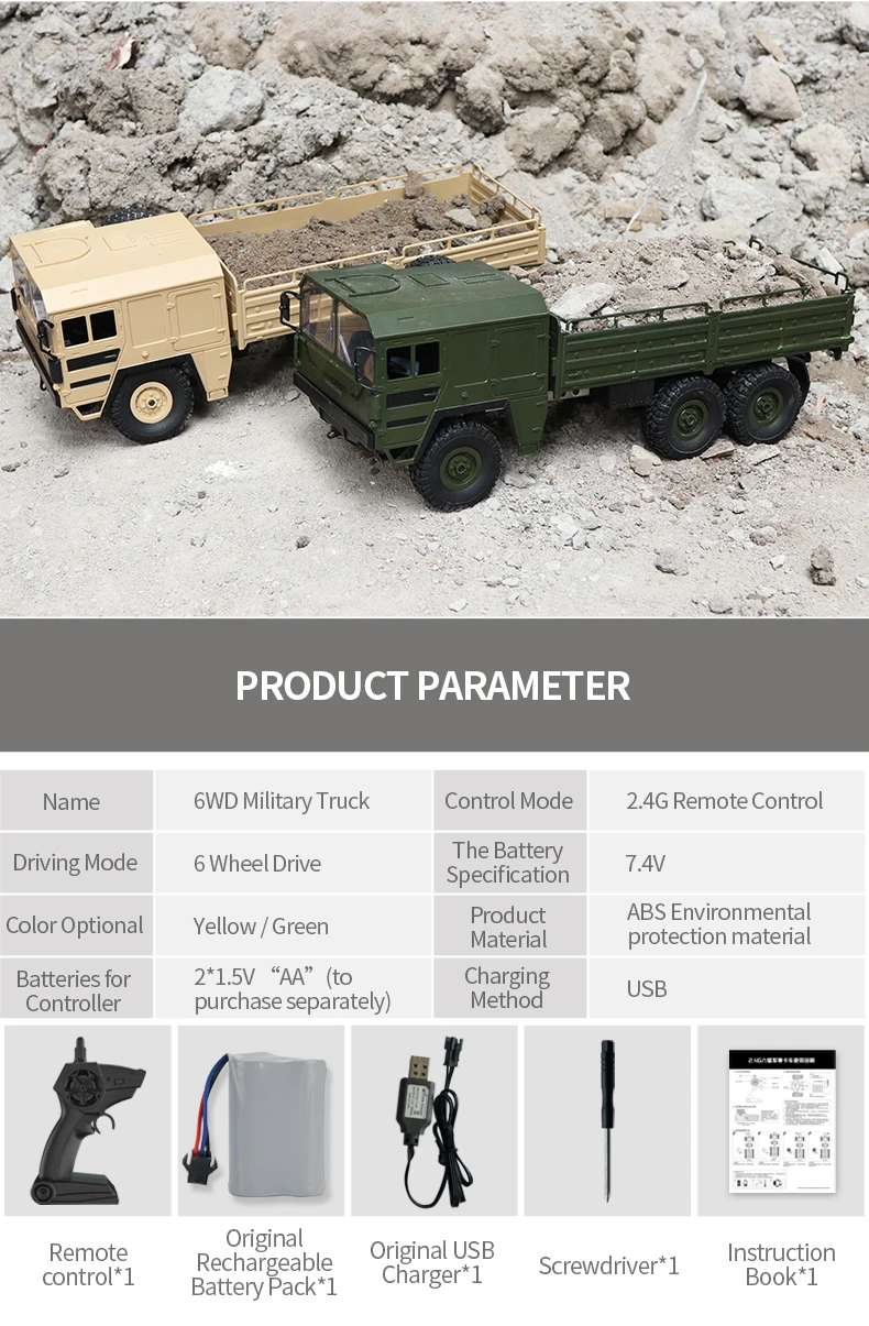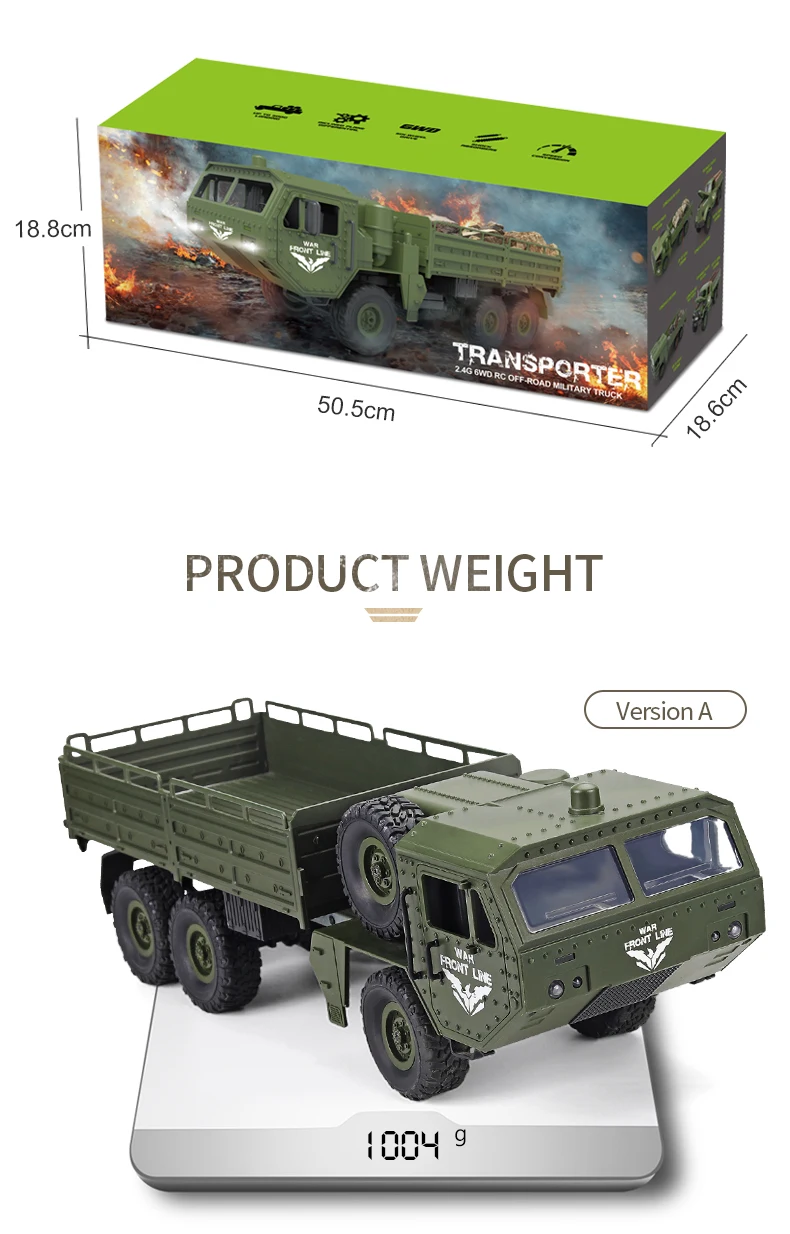 | JJRC Q75 Q60 1:16 RC Cars 2.4Ghz Military Car Off-Road Rock Crawler RC Vehicles Half Scale Six-Wheels Truck Toy For Kids Toy |