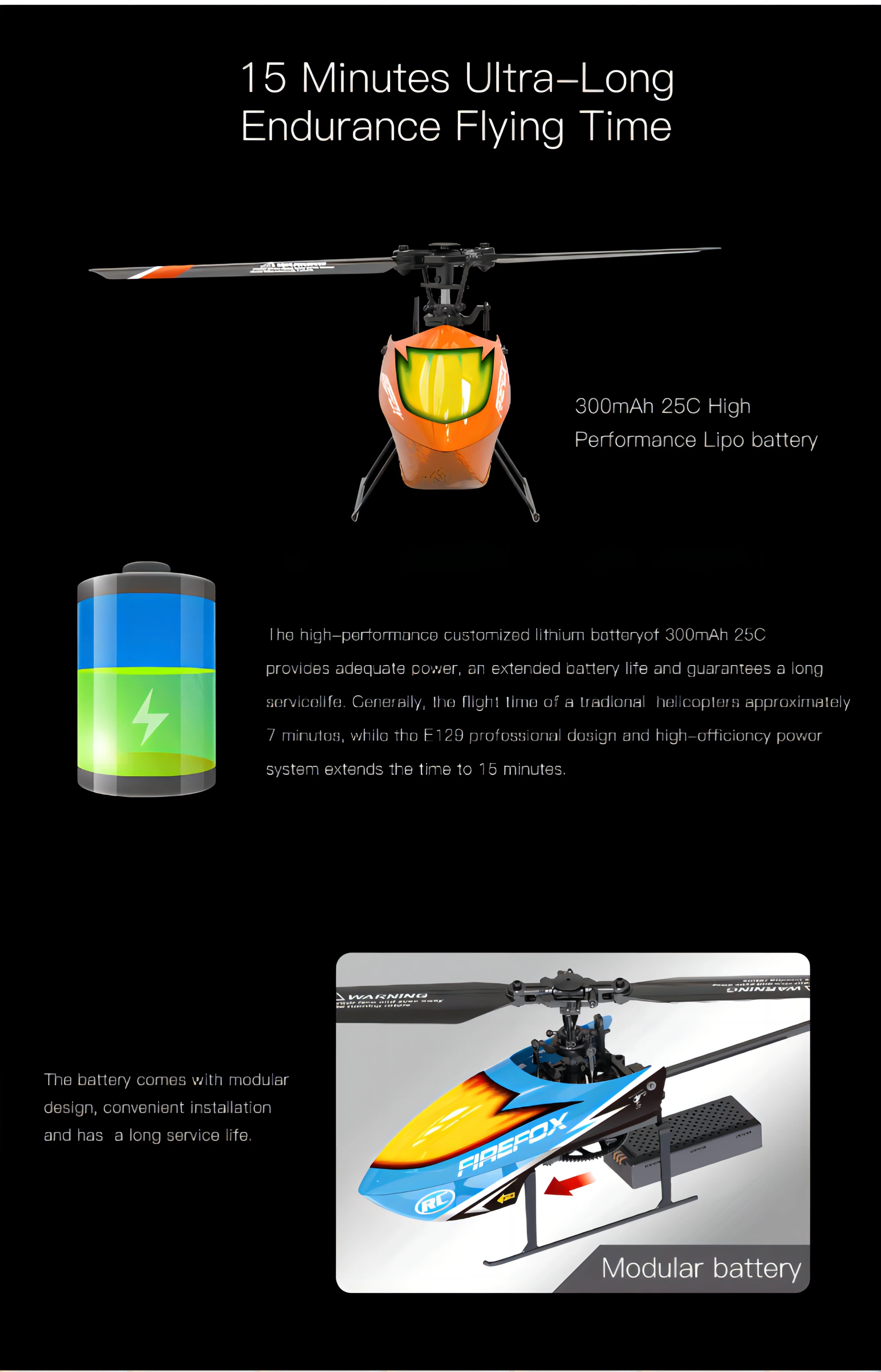 - Flying time : 15 minutes