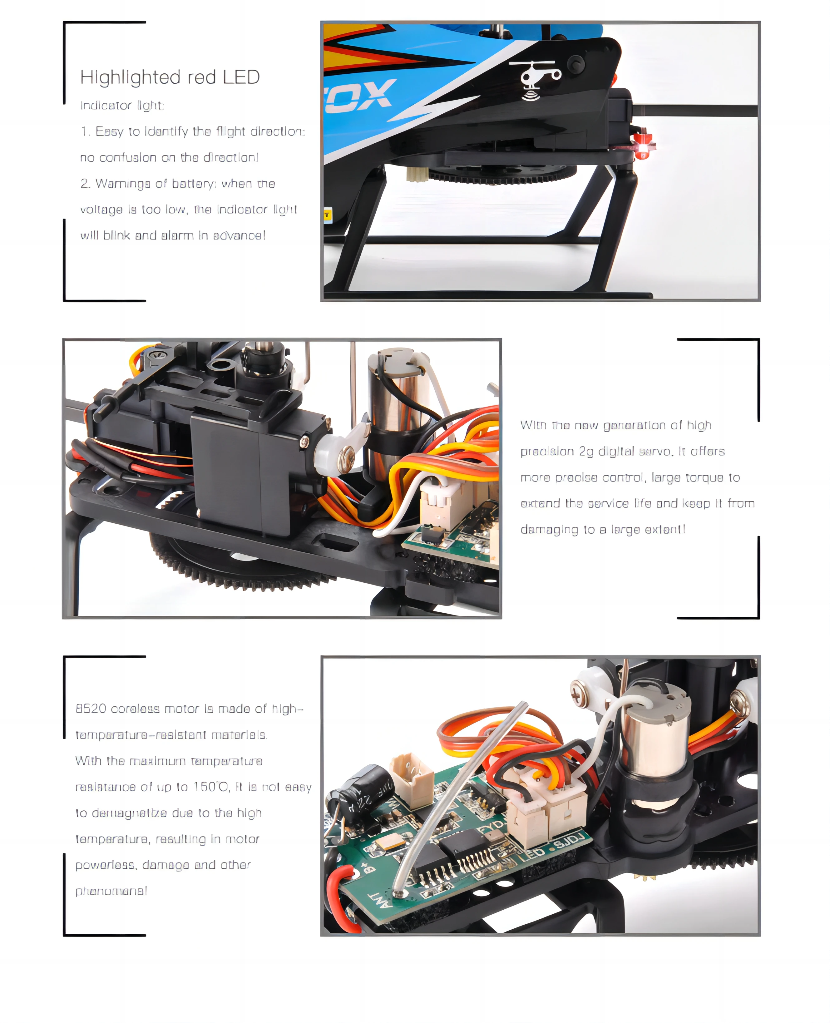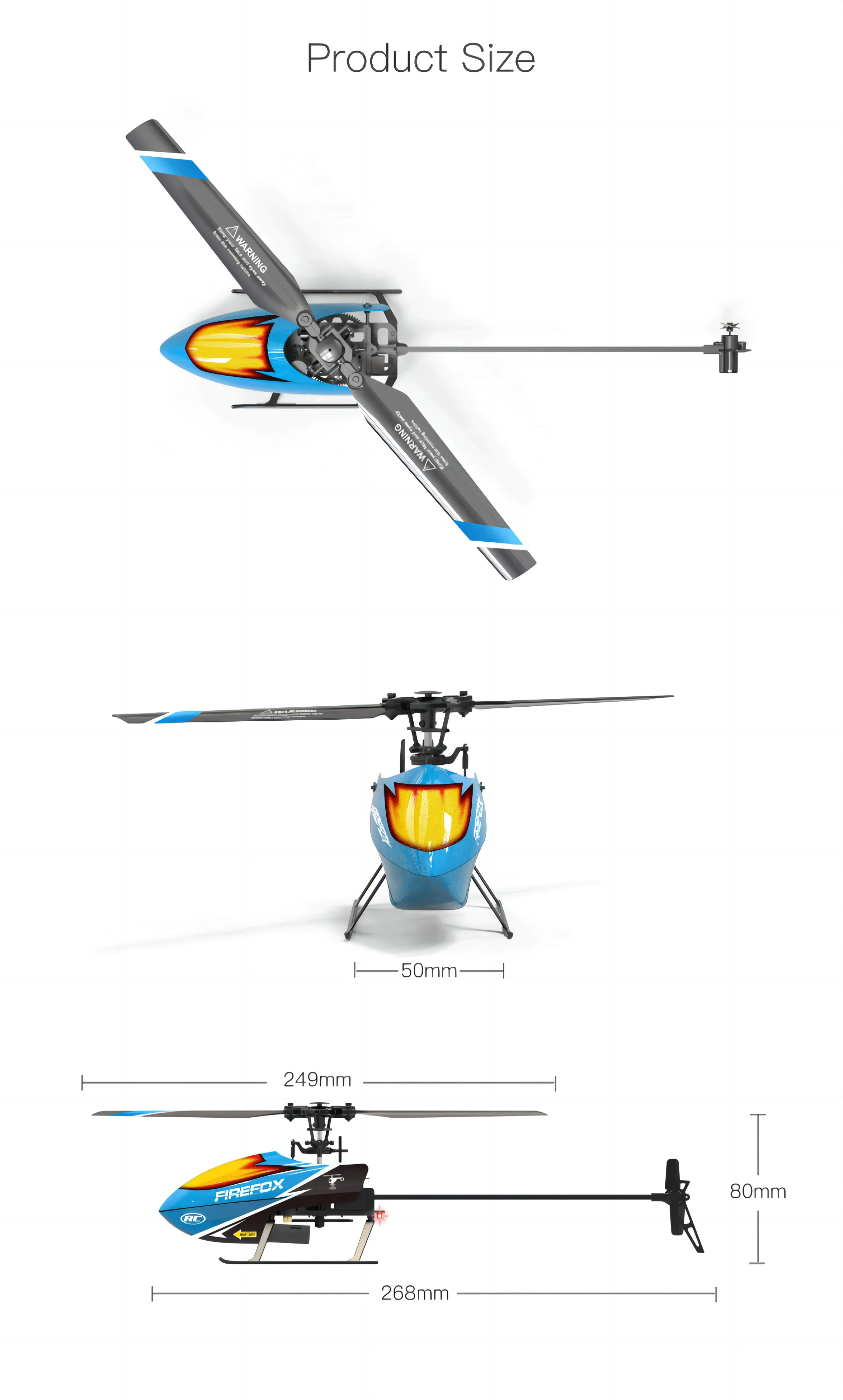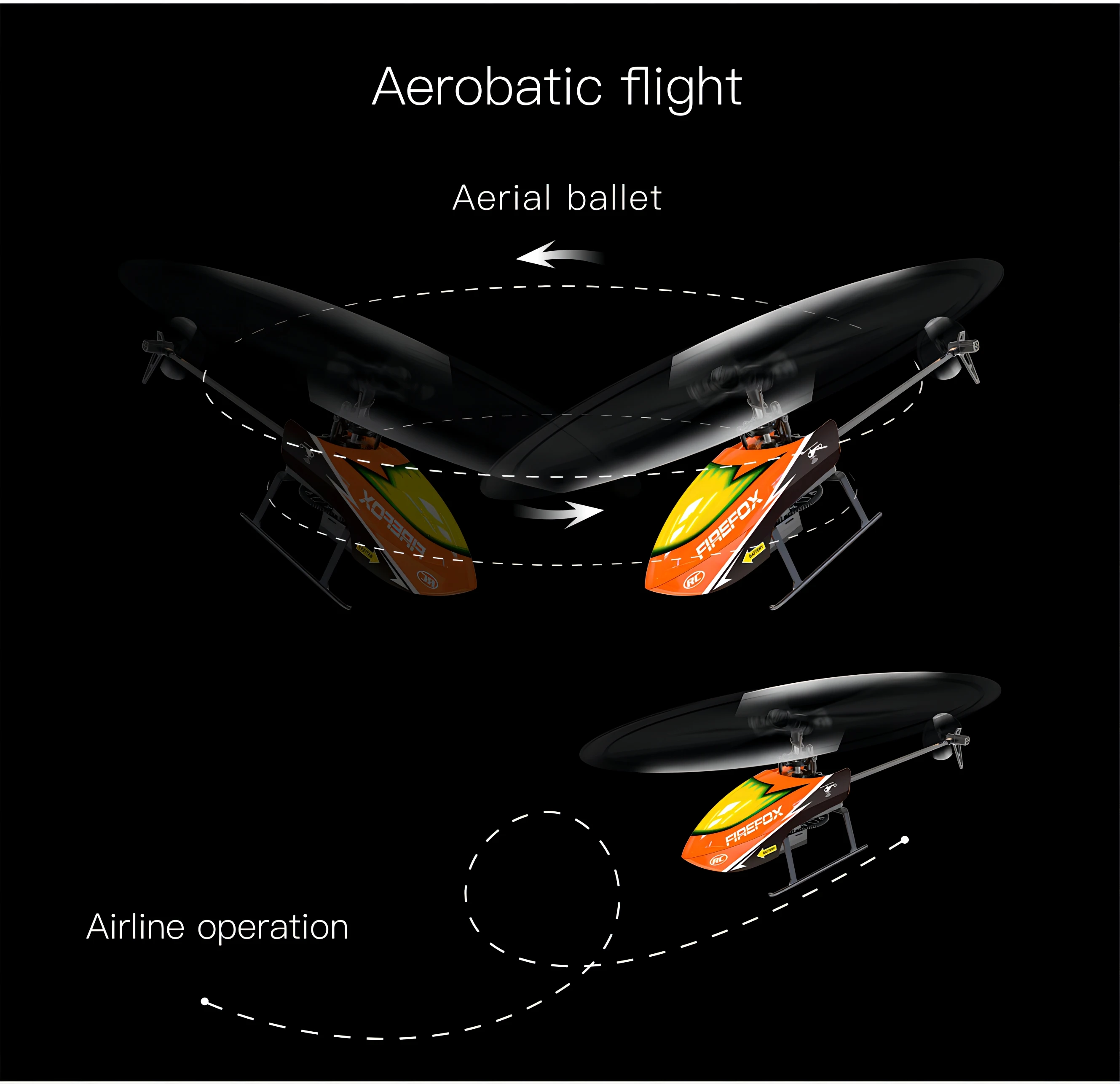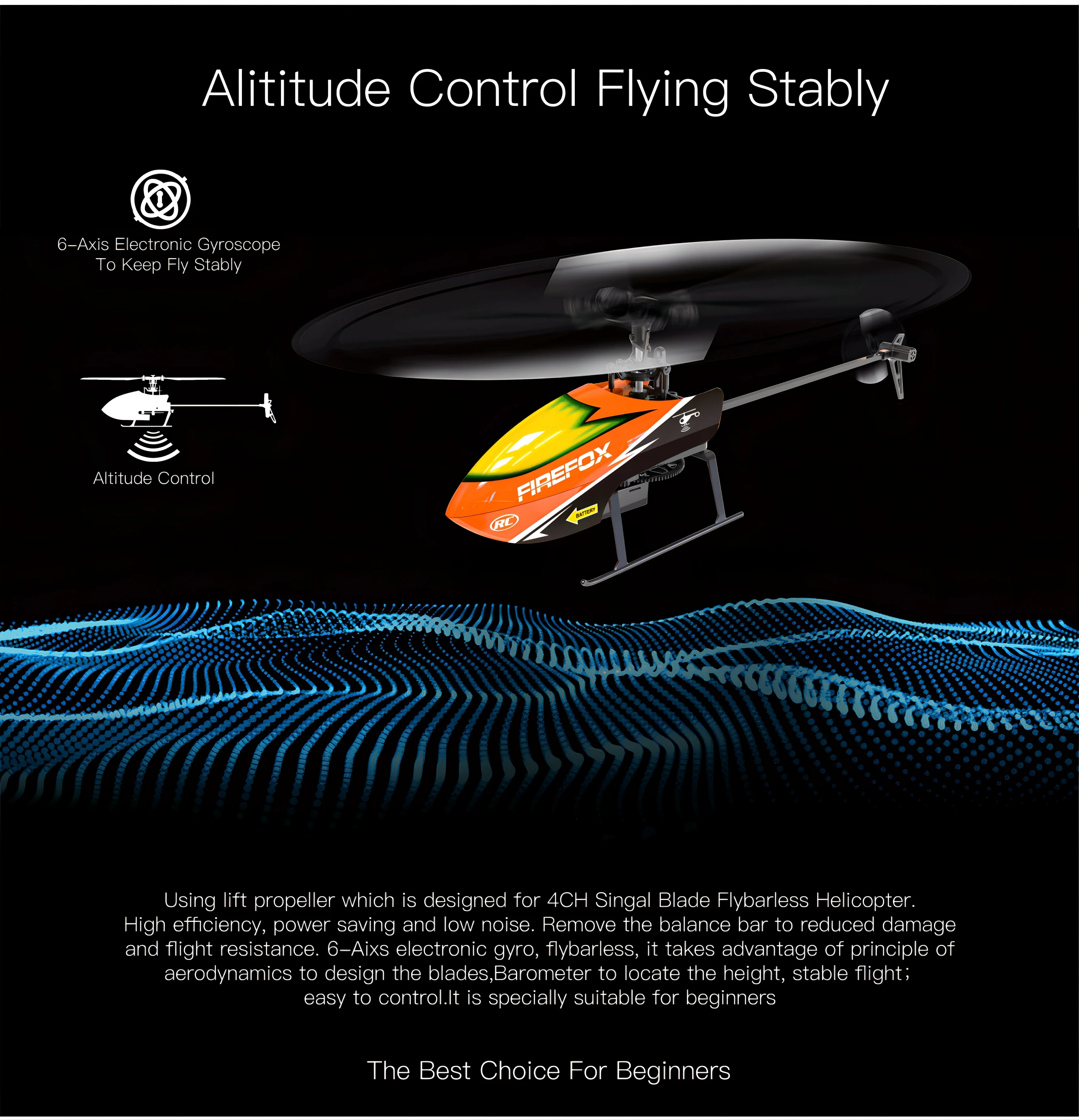 - Product name : 4ch 2.4G RC Flybarless Helicopter altitude hold function, without flip