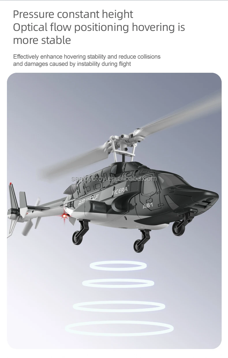 It adopts a single-rotor design without ailerons, with a 6-axis electronic gyroscope for stabilization and a barometer for height adjustment, making the flight more stable and easier to handle! Super long battery life! Impact-resistant! The shape is reduced in proportion to the real aircraft. It can not only be used for flight control but also as a decorative item. Optional optical flow positioning. For quotations, please consult customer service.