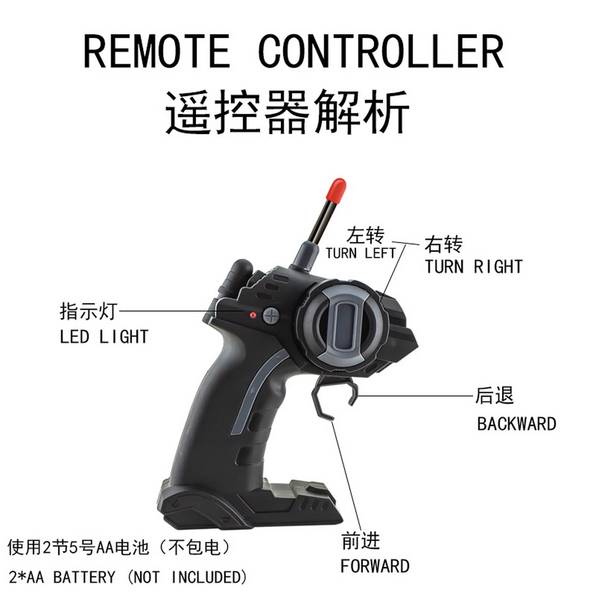 Vehicle 3.7V Li-ion Battery Included ; Remote controller AA*2 battery not include ; USB line re-chargeable;