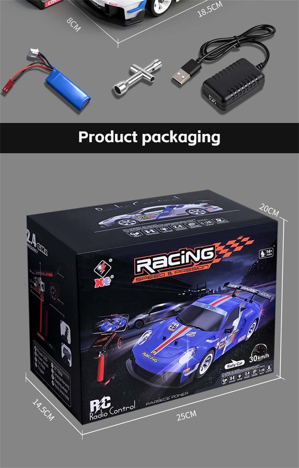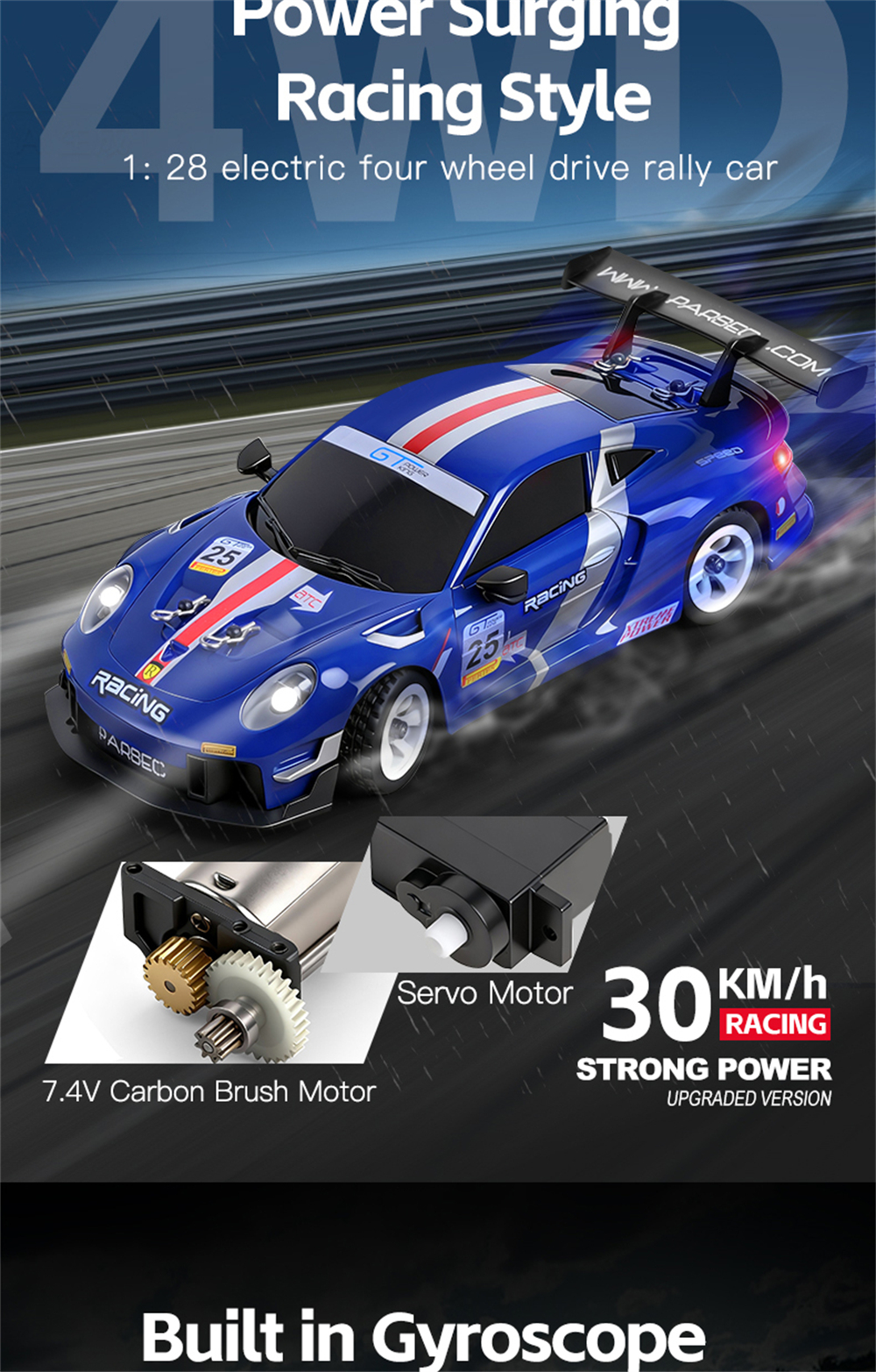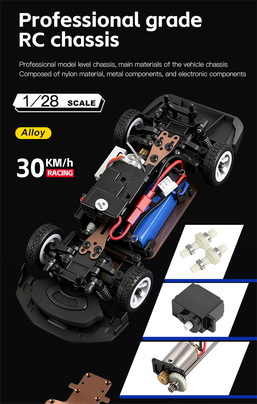 – 1/28 Scale 4WD mini RC platform – compact but mighty.